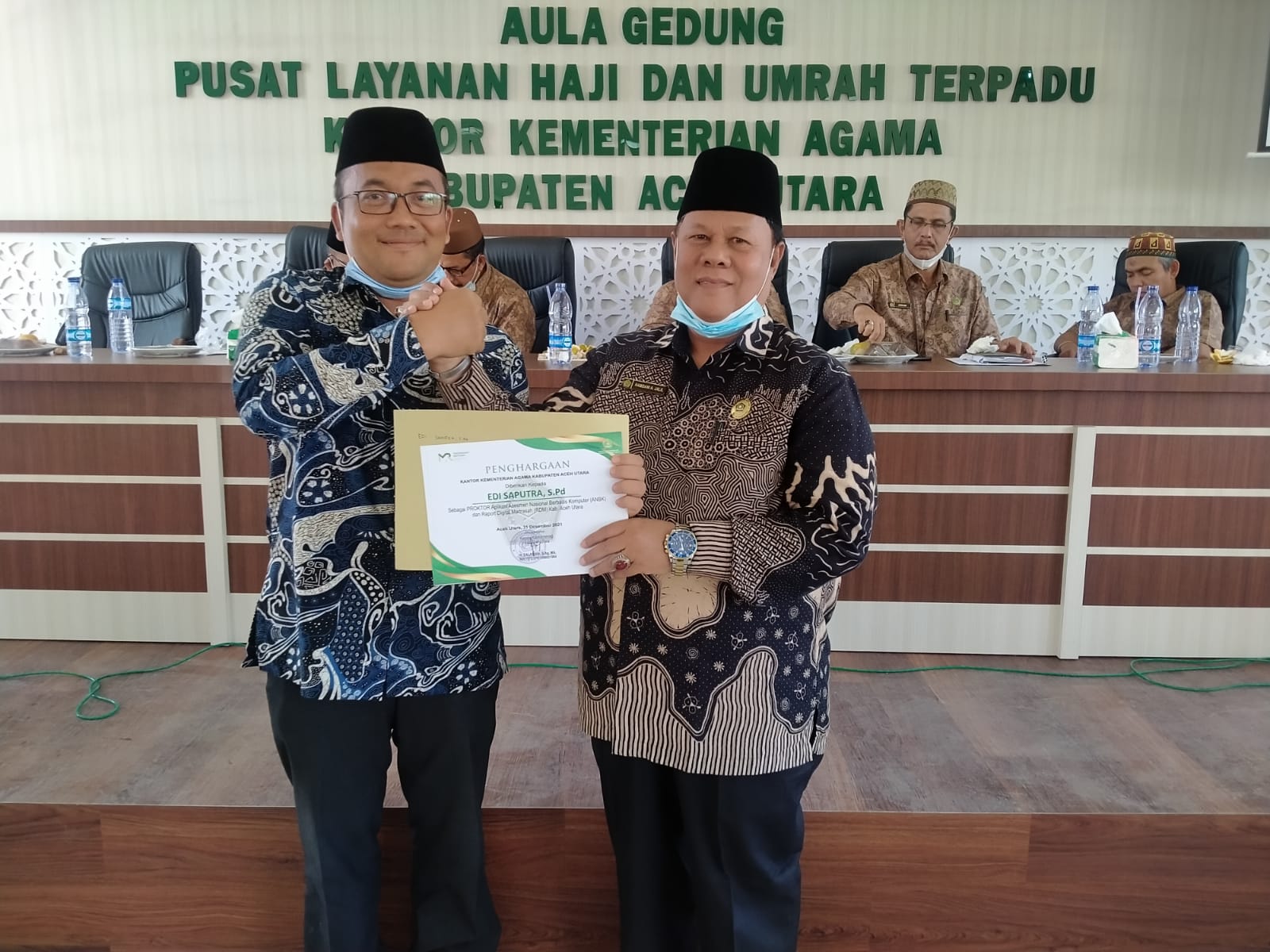 Dalam Kesempatan ini, Bapak Kepala MTsN 7 Aceh Utara Bapak Dahlan, S.Ag menyampaikan Selamat Kepada Guru MTsN 7 Aceh Utara, Bapak Ustadz Edi Saputra, S.Pd.I yang telah terpilih mendapatkan Kankemenag Awards 2021 semoga Guru-guru lain dapat mengikuti seperti Bapak Edi Saputra, S.Pd.I