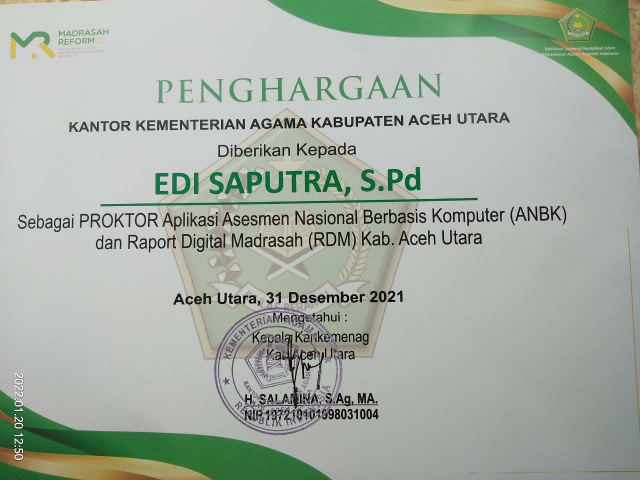 Dan Untuk Penggunaan Aplikasi Rapor Digital (RDM) yang dimulai pengguanaannya secara resmi mulai Tahun Pelajaran 2021/2022 Semester Ganjil ini, Kita semua madrasah diwilayah Kementerian Agama Kab. Aceh Utara sudah 100 % menggunakan Aplikasi Rapor Digital Madrasah (RDM) dan ini adalah komitmen kita semua Begitu yang disampikan oleh Bapak Kasi Pendidikan Madrasah Drs. H. Hamdani A. Jalil. MA.